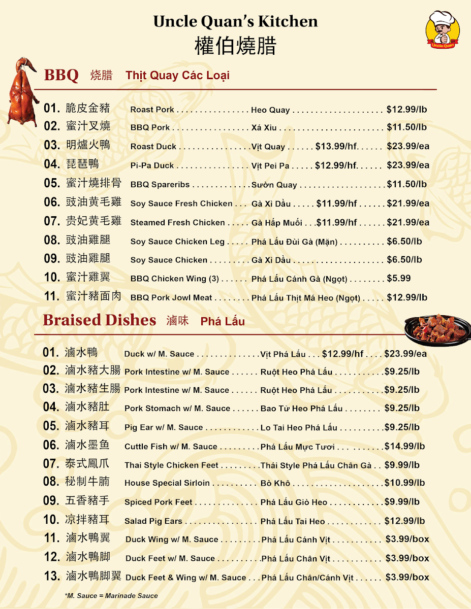 Altogether, the Uncle Quan's Kitchen Menu is a flavorful journey through Cantonese comfort food with regional flair, delivering value, variety, and bold tastes in a way that satisfies both traditional palates and modern cravings. Whether you’re stopping by for a quick set meal or diving into a full spread of braised and BBQ delights, Uncle Quan’s leaves a lasting impression with its authentic offerings and generous portions.